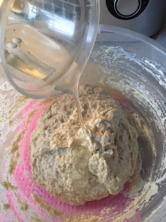 * adaugam uleiul si framantam usor. Pastram o lingura de ulei din el,